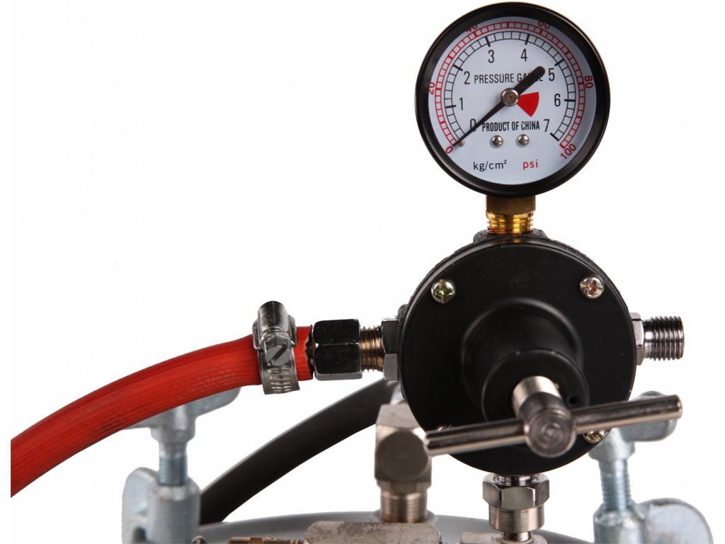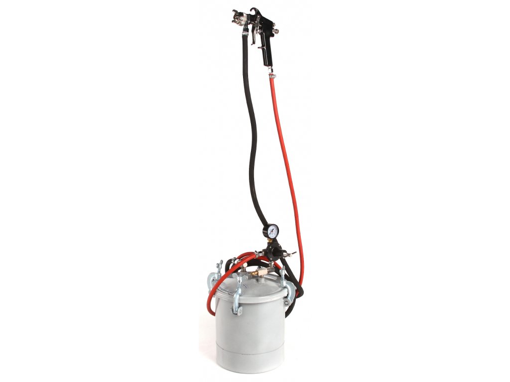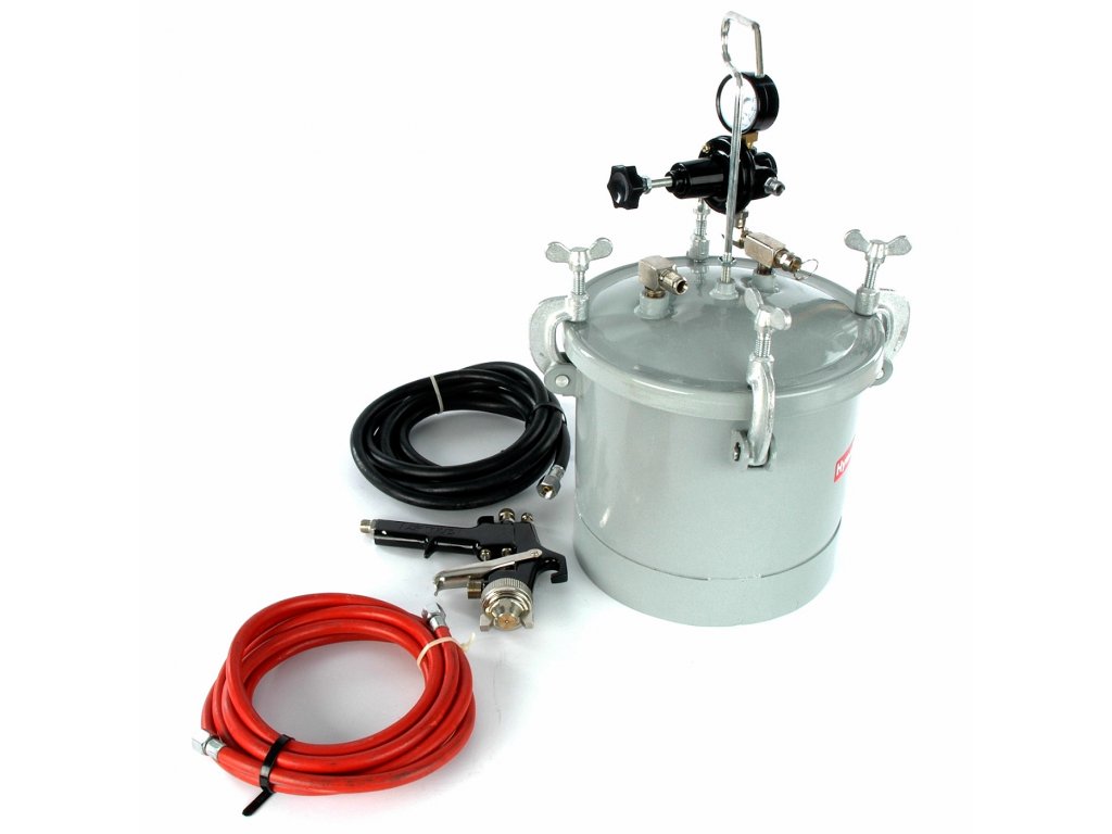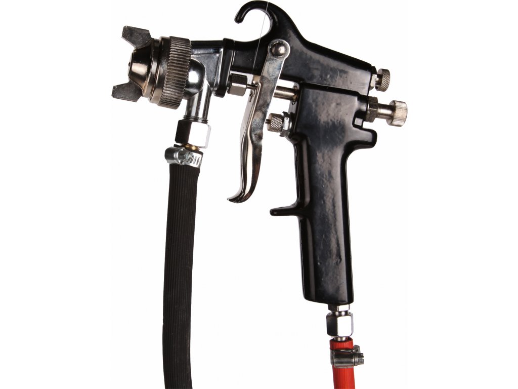 Pistol de vopsit cu recipient extern de 8 l. Duză 1,8 mm, lungimea furtunurilor 3,5 m. Presiunea de lucru 3,5 – 5 bari. Racord 1/4". Potrivit și pentru vopsele pe bază de apă.