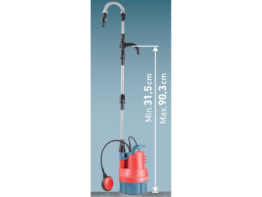 Pompa de butoi este proiectat pentru pomparea apei curate din butoaie de apă de ploaie și datorită înălțimii sale de descărcare de gestiune de 11 m devine apă în întreaga zonă a grădinii acasă. Cu pompa de butoi nu este nevoie să transportați cutii grele de udare cu apă pentru udare pe furtunul de grădină pot fi conectate diverse accesorii de irigare și stropire / udare și cu utilizarea unui aspersor pe tijă este posibil să se udă confortabil florile în ghivece la înălțime, să se dew florile cu ceață sau cu utilizarea accesoriilor de stropire pentru udarea gazonului poate fi folosit pentru udarea apei de ploaie a gazonului. Impuritățile solide cu o dimensiune maximă de 1 mm trec prin pompă. La ieșirea pompei există un furtun metalic flexibil și o supapă prin care debitul de apă poate fi reglat după cum este necesar. Cu ajutorul comutatorului plutitor, puteți ajusta înălțimea corespunzătoare a nivelului apei din butoi, iar când ajungeți la această înălțime, comutatorul oprește automat pompa și o protejează de deteriorări atunci când se usucă. Pentru a simplifica funcționarea, pompa are un tub modular de aluminiu la ieșire cu un cârlig în intervalul de 31,5 - 90,3 cm și poate fi atârnat într-un butoi. Pompa este proiectată pentru a pompa apă de serviciu curată fără contaminare mecanică.