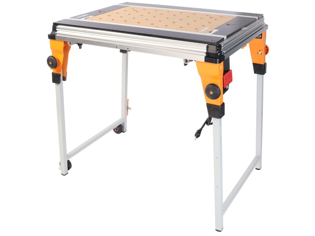 Masă universală de prelucrare a lemnului cu o varietate de accesorii pentru o gamă largă de operații de prelucrare a lemnului. Comutator principal izolat (3500 W) și o priză integrată pentru conectarea sculelor electrice; cu butonul de oprire operat cu genunchiul. Conține un Blat de lucru cu orificii pentru cleme de prindere pentru TWX7. Datorită modulelor ușor de montat, transformați centrul de lucru în mașina de care aveți nevoie. Include șuruburi pentru nivelarea extensiilor pentru o calibrare simplă a planului, rezultând astfel o suprafață de lucru perfectă. Rotițele de poziționare simplifică foarte mult manevrabilitatea chiar și pentru reglajele minore de poziție. Ușor de demontat pentru transport sau depozitare. Ca accesorii sunt disponibile: Modulul de frezare pentru centrul de lucru TWX7 ( cod produs. 265709 ), Extensia mesei Centrului de lucru TWX7 ( cod produs. 265901 ), Extensia mesei Centrului de lucru TWX7 ( cod produs 266505 ) și Modulul de fierăstrău pentru TWX7 ( cod produs. 255671 ). Dimensiunile pachetului: 1 045 × 850 × 370 mm.