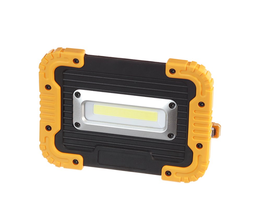 Design modern, subţire, cu elemente de protecţie împotriva deteriorării şi suport, LED COB extrem de puternic, indice de redare a culorilor (Ra) 80. Reflectorul este alimentat de două baterii Li-ion reîncărcabile, încorporate, şi dispune de protecţie împotriva jeturilor de apă.