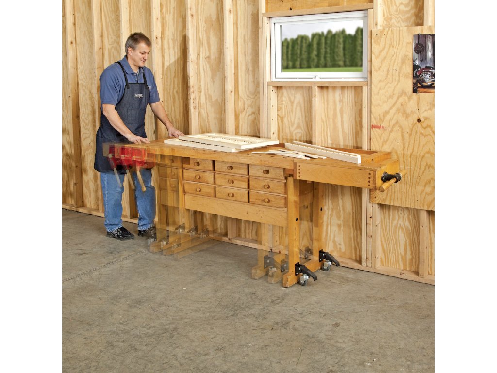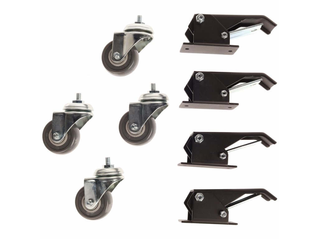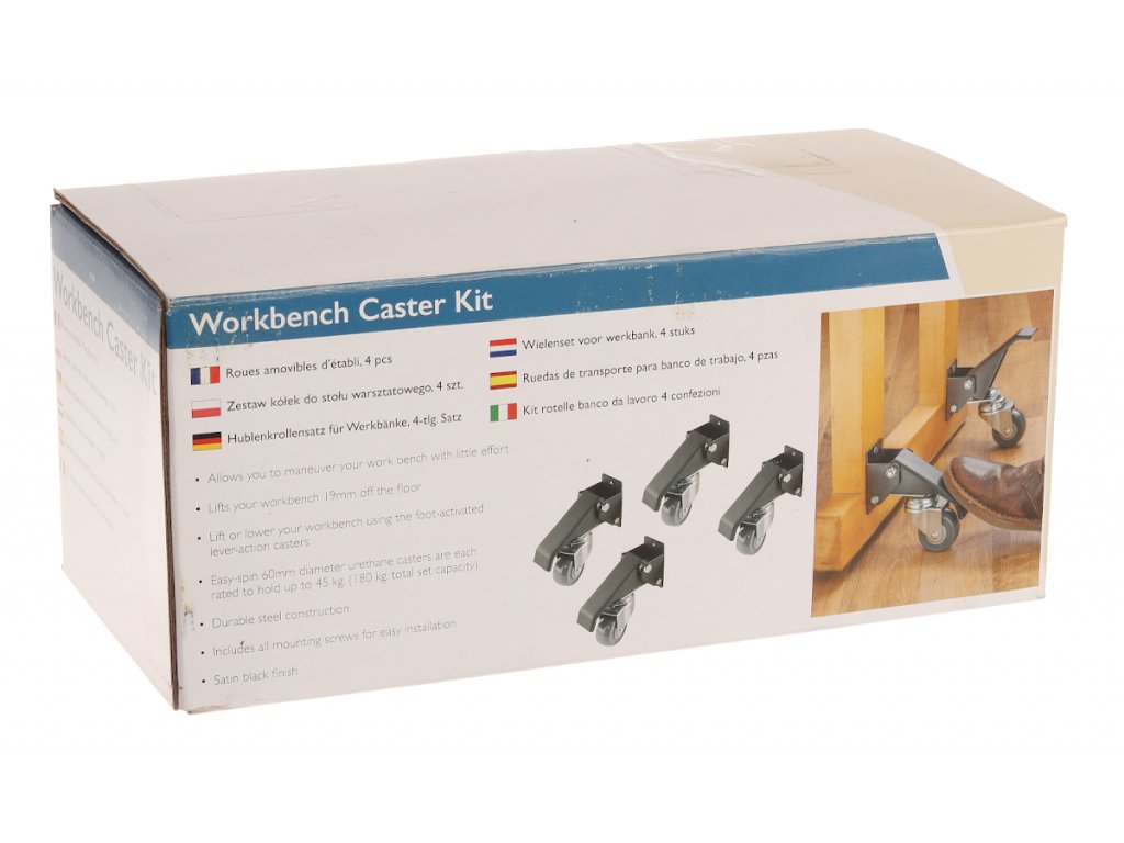 Construcţie durabilă cu roţi din poliuretan de înaltă calitate. Pedalele care permit ridicarea şi mişcarea bancului de lucru ori de câte ori este nevoie, dar menţin bancul de lucru constant în timpul lucrului. Fiecare rolă este controlabil şi are o capacitate de 45 kg (100 lb) cu o capacitate de încărcare totală de 180 kg (400 lb) atunci când setul complet este instalat.
