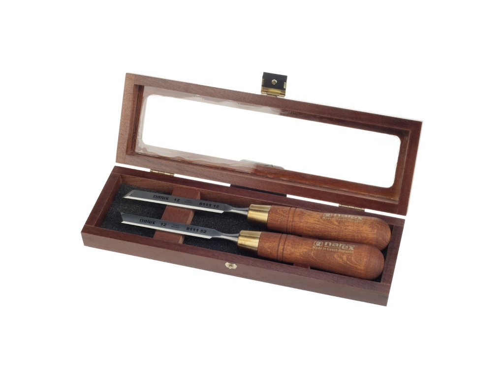 Unelte speciale cu stânga sau cu o teșire dreaptă de 30˚. Sunt potrivite pentru lucrări de curățare în colțuri, cozi de rândunică sau în locuri greu accesibile unde nu puteți lucra cu daltele standard. Lama forjată este fabricată din oțel tradițional Cr-Mn tratat termic la o duritate de 59 HRc. Manerul ergonomic din lemn de carpen dur si dur este foarte rezistent la loviturile puternice cu ciocanul. Designul mânerului colorat în combinație cu butucul din alamă și ascuțirea specială a lamei creează un design unic al acestui instrument. Setul conține două dalte de aceeași lățime în design dreapta/stânga.
