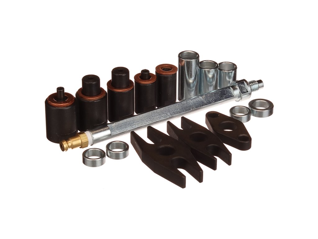 Set universal de adaptoare pentru măsurarea compresiei la motoarele diesel. Gamă largă de utilizare de la autovehiculele de pasageri la camioanele grele. Livrat într-o trusă din plastic.