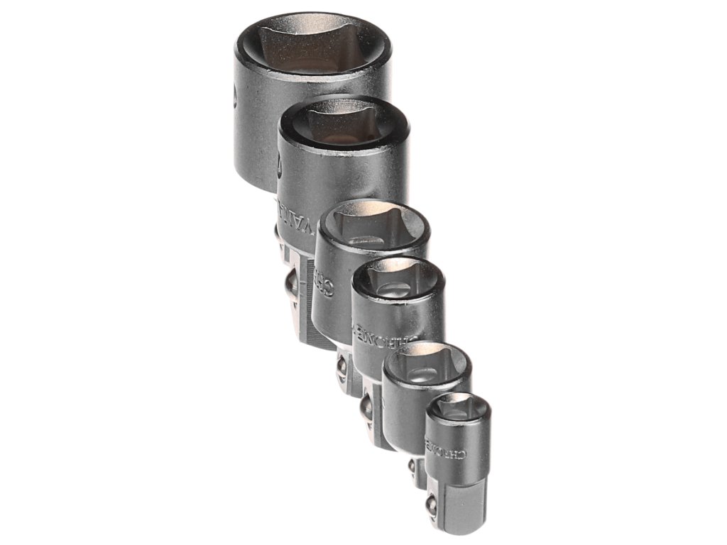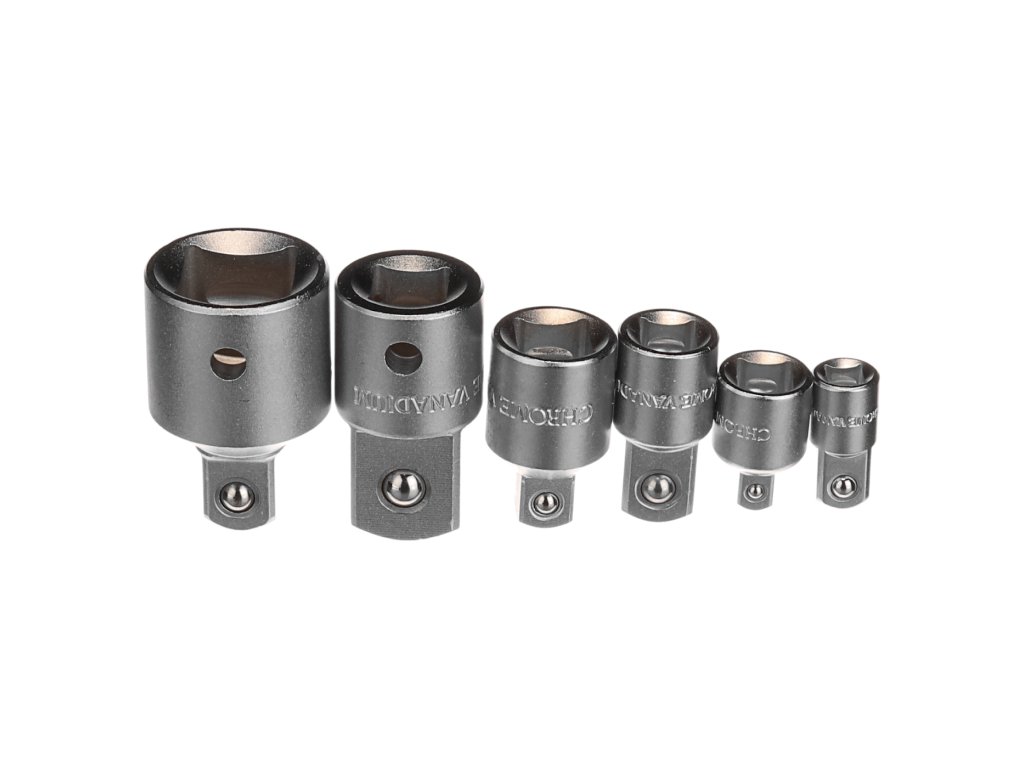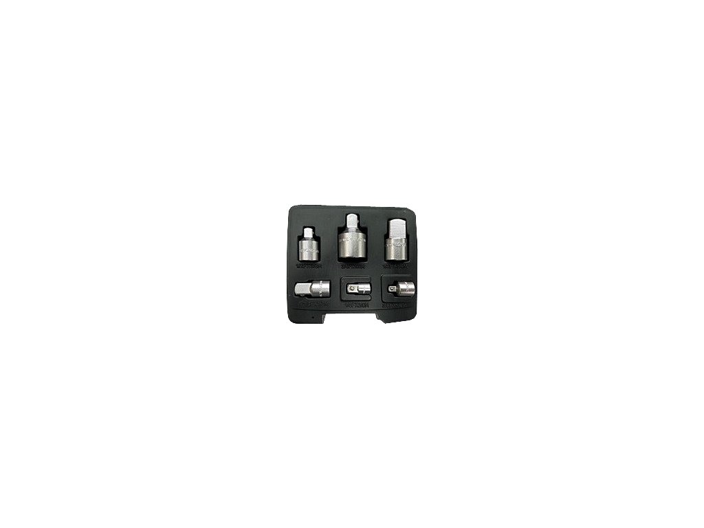 Setul permite orice combinaţie a tuturor adaptoarelor în serii de 4 dimensiuni. Conţine adaptoare 1/4"(M) × 3/8"(F); 3/8"(M) × 1/4"(F); 1/2"(M) × 3/8"(F); 3/8"(M) × 1/2"(F); 3/4"(M) × 1/2"(F); 1/2"(M) × 3/4"(F); Ambalat într-o cutie de plastic.
