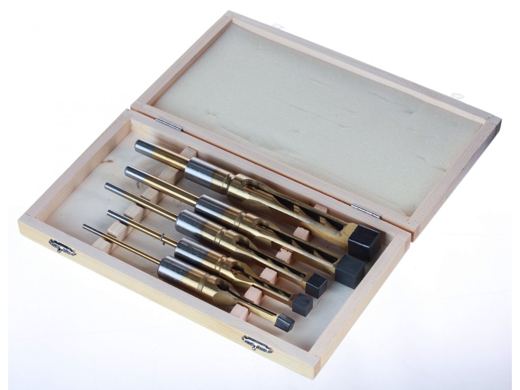 Set profesional de burghie pătrate pentru dăltuiri precise în lemn, MDF și PAL. Oțel C45, strat de titan.