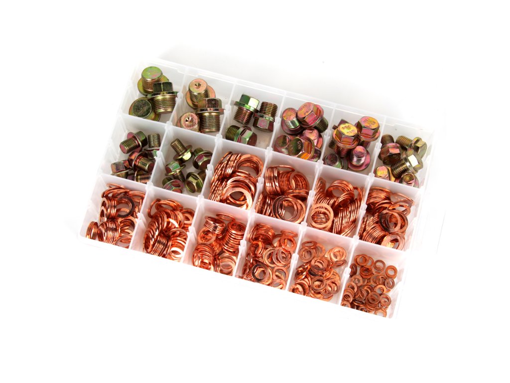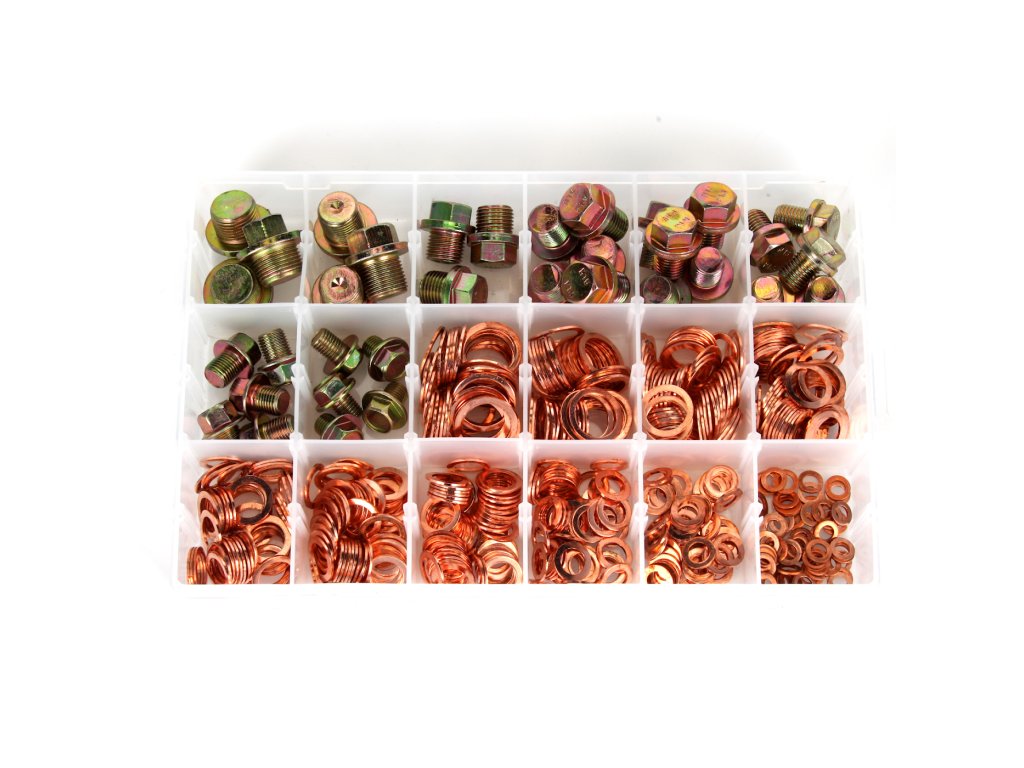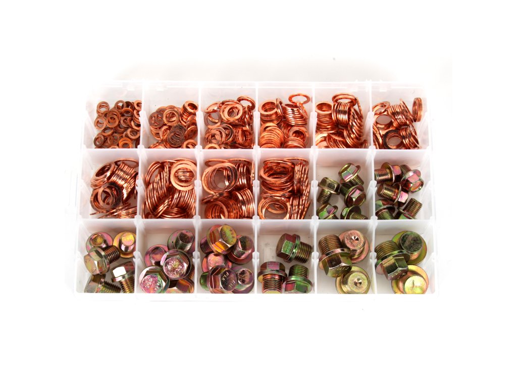 Are o utilizare universală, este potrivit îndeosebi la repararea băilor de ulei ale autovehiculelor. Conține inele de etanșare din cupru a câte 50 buc., diametre 6, 8, 10, 12, 13, 14, 15, 16, 18 și 20 mm, apoi capace cu filet cu dimensiuni 10 × 1,25 × 12,4 mm, 12 × 1,25 × 12,4 mm, 13 × 1,5 × 15,5 mm, 14 × 1,5 × 15,5 mm, 15 × 1,5 × 15,1 mm a câte 5 buc. și 16 × 1,5 × 13 mm, 18 × 1,5 × 16 mm, 20 × 1,5 × 13 mm a câte 3 buc. Toate 534 de bucăți sunt amplasate sinoptic în cutie din plastic.