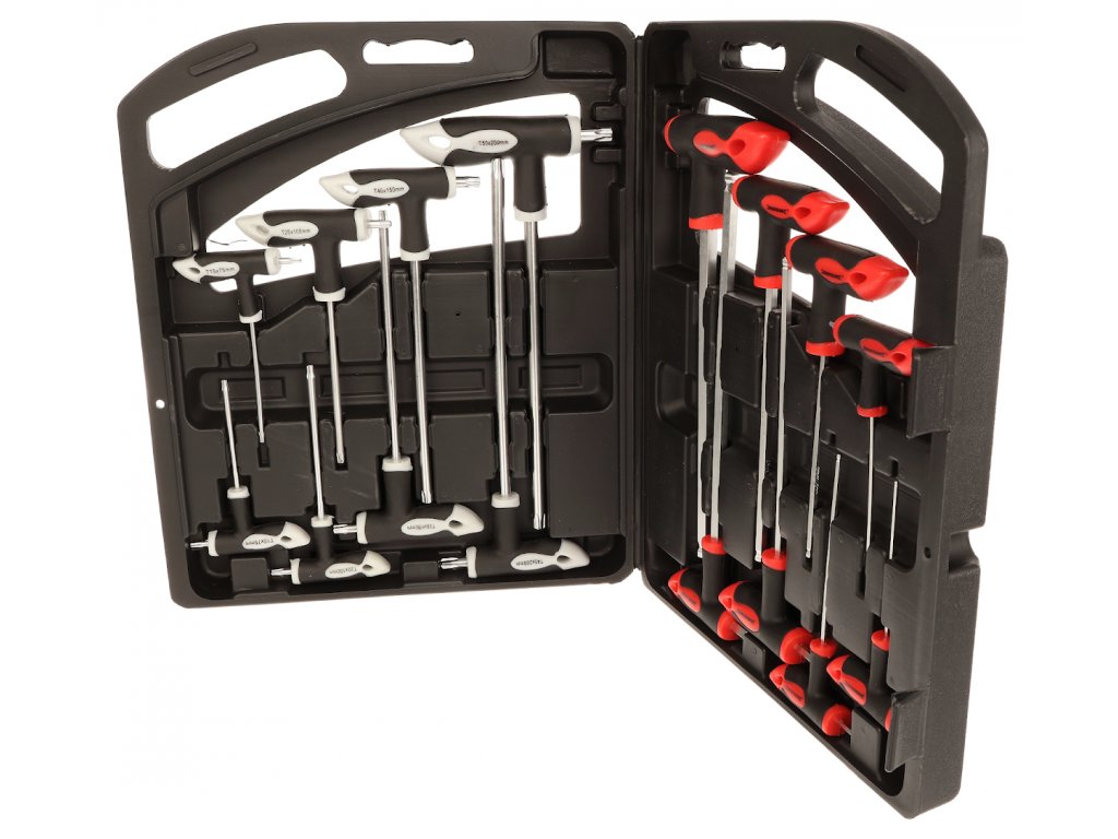 Setul conține chei Allen: 2; 2,5; 3; 4; 5; 6; 8 și 10 mm și TORX: T10; T15; T20; T25; T30; T40 și T50.