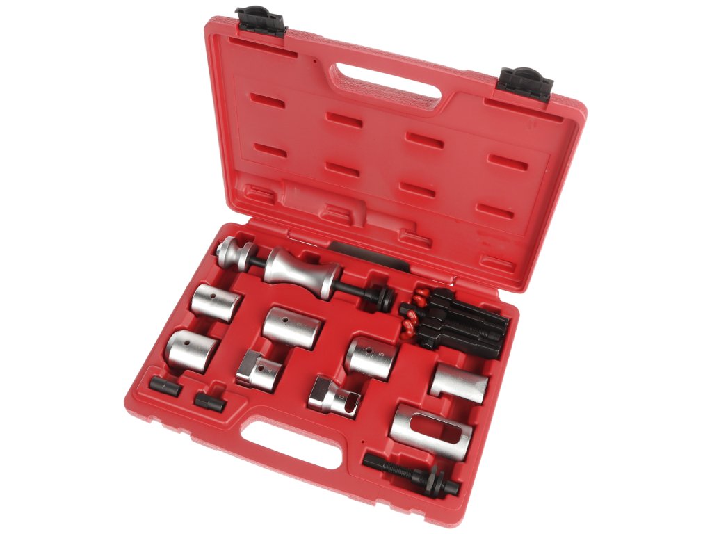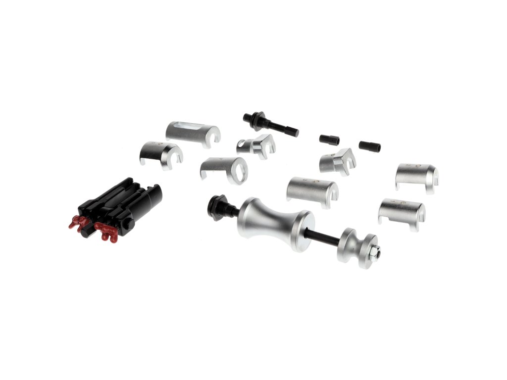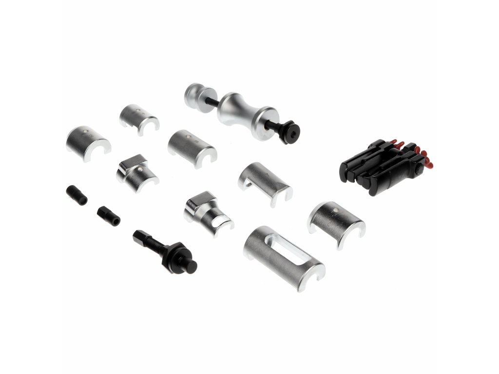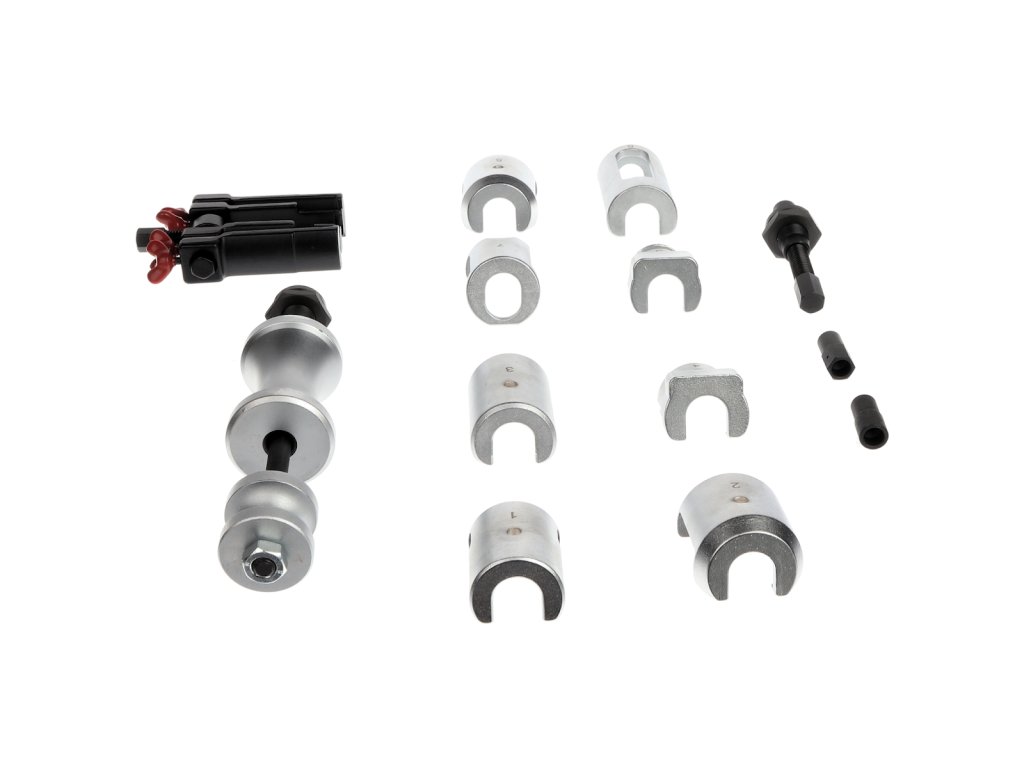 Conţine 16 piese utilizate pentru demontarea braţelor ştergătoarelor de parbriz ale maşinilor şi camioanelor. Potrivit pentru mărcile auto Audi, Alfa Romeo, BMW, Chrysler, Jeep, Citroen, Chevrolet-Daewoo, Daihatsu, Fiat, Ford, Honda, Hyundai, Jaguar, KIA, Land Rover, Mazda, MG Rover, MB, Mitsubishi, Nissan, Opel, Peugeot, Porsche, Renault, Saab, Seat, Škoda, Suzuki, Toyota, Volvo, Volkswagen şi camioane ale mărcilor MAN, MB, Scania şi altele. Toate piesele sunt aranjate perfect într-o geantă din plastic.