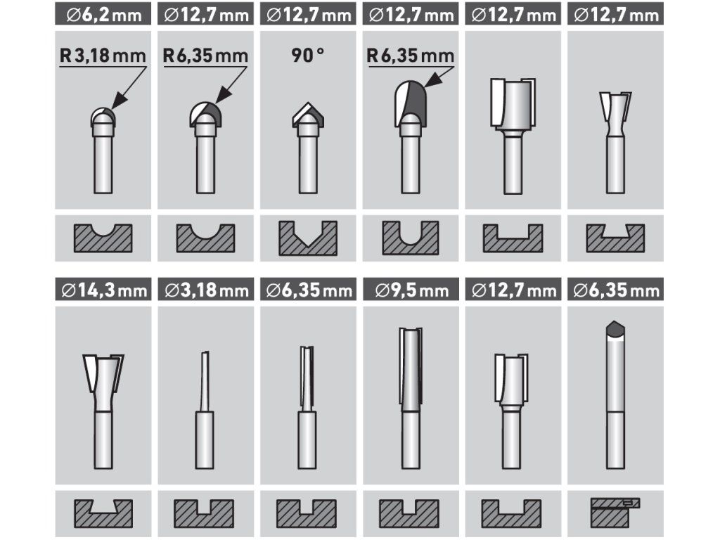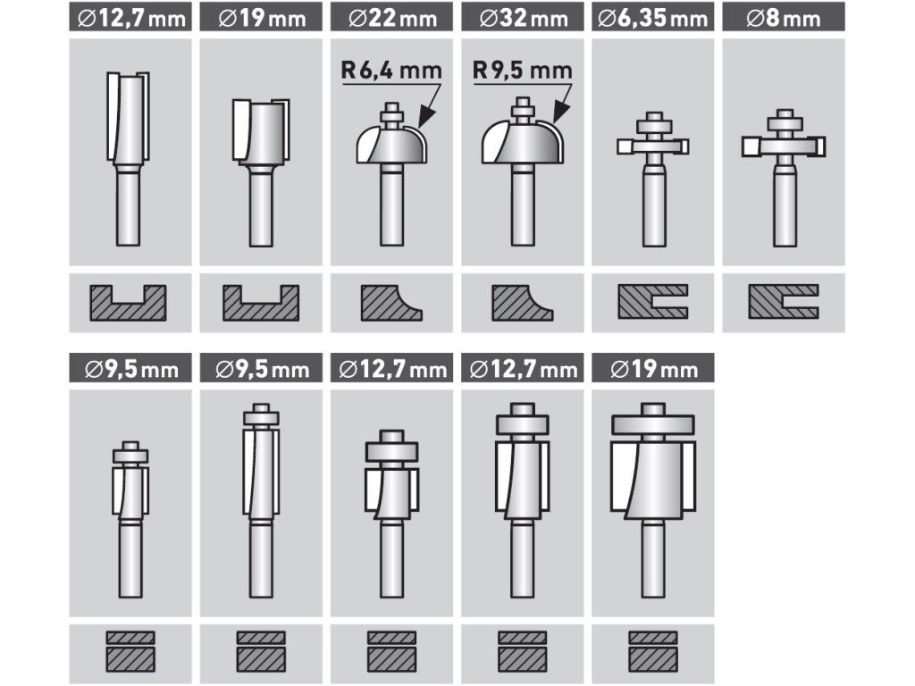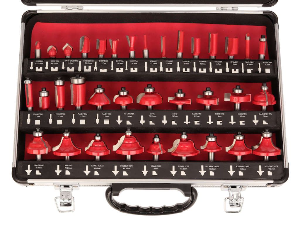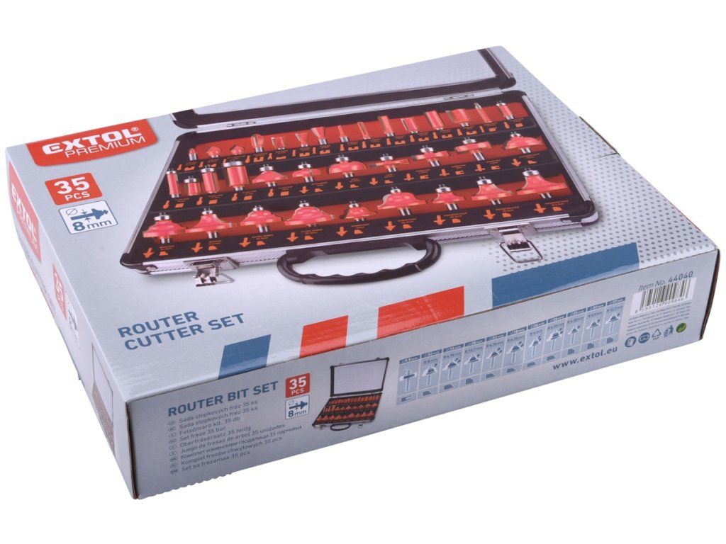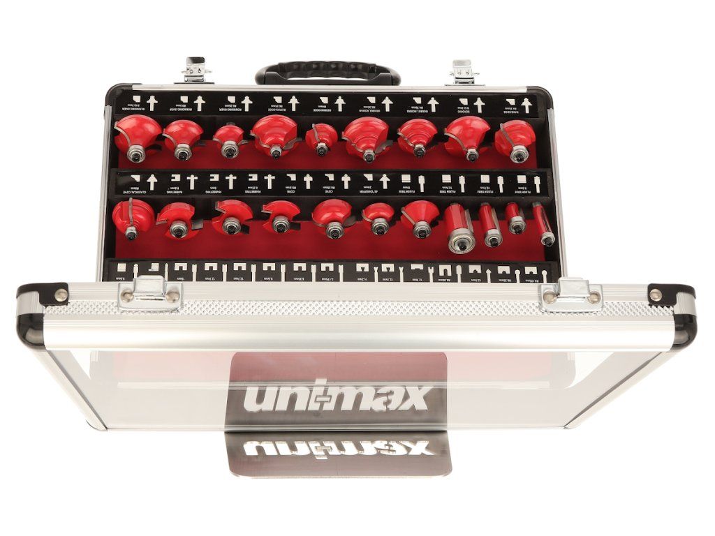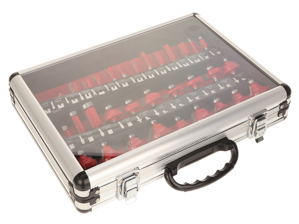 Set mare de freze de profil cu o coadă, cu diametrul de 8 mm. Frezele au o margine de tăiere cu carbură de tungsten şi sunt echipate cu o roată de ghidare cu un rulment de înaltă calitate. Potrivite pentru prelucrarea şi tăierea lemnului moale şi tare, a plăcilor din plastic şi a plăcilor presate. Livrate perfect depozitate într-o cutie metalică.