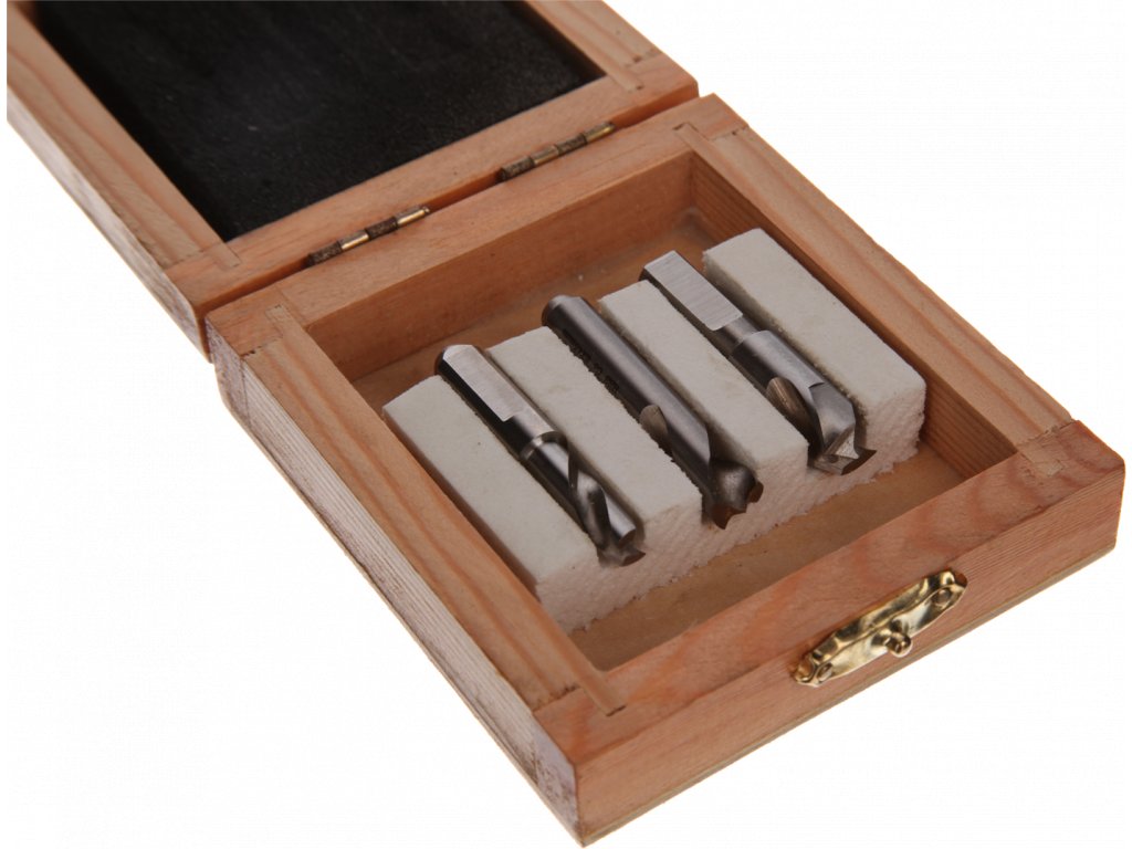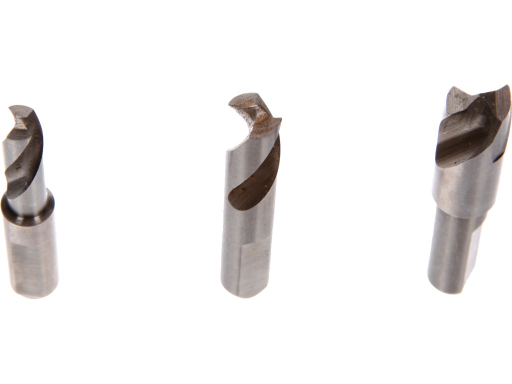 Conține 3 freze potrivite pentru prelucrarea sudurilor în puncte cu diametre de 6, 8 și 10 mm cu coadă cu diametru de 8 mm, lungime 45 mm, material oțel rapid.