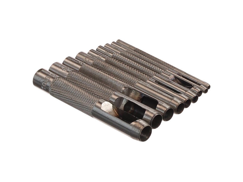 Potrivite pentru poansonarea găurilor în piele, cauciuc etc. Ø 2,5; 3; 4; 5; 6; 7; 8; 9 şi 10 mm. Material: oţel carbon călit.