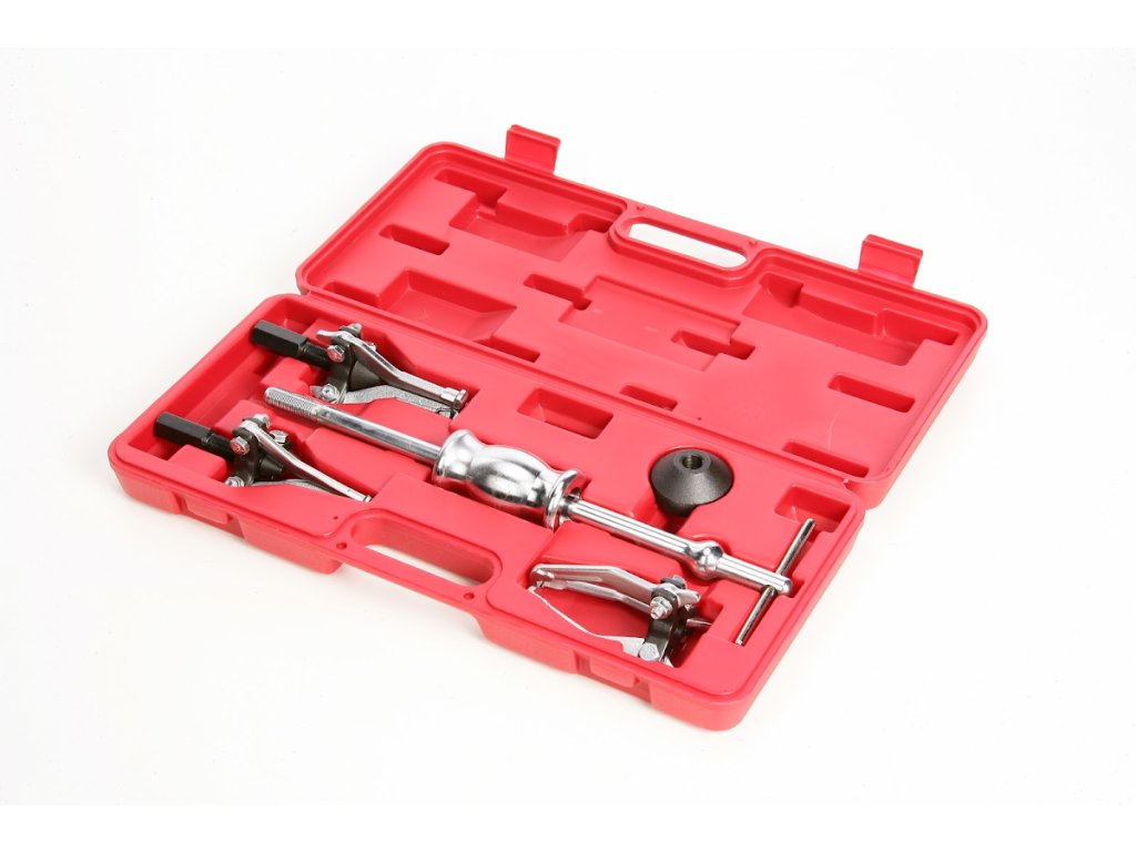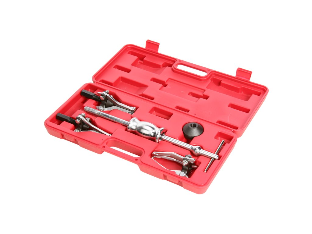 Setul de extractoare rulmenţi cu ciocan revers permite prinderea interioară a diametrelor 15 – 30, 30 – 80 mm şi prinderea exterioară a diametrelor 15 – 80 mm. Piuliţele conice cu autostrângere şi prindere în trei puncte asigură prinderea stabilă a rulmentului fără riscul de alunecare.