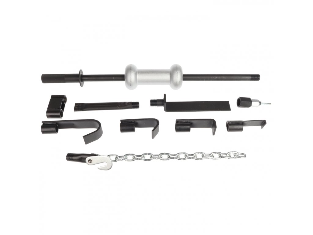 Extractorul (extractor culisant) cu accesorii găseşte o varietate de utilizări în îndepărtarea înfundăturii de pe caroserie. Piesa centrală a setului este un extractor culisant cu greutatea de 2,8 kg. Cu acesta vin 9 accesorii speciale care se conectează la capătul extractorului şi permit tragerea uşoară a tablelor în locuri greu accesibile. Mărime extractor 182 mm, lungime totală 590 mm.
