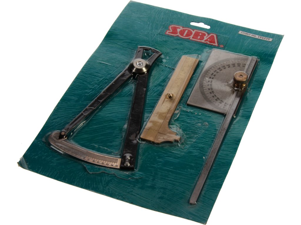 Conține dispozitive de măsurat de bază pentru utilizare în gospodărie și în atelier. Se compune din șubler, gheară exterioară și riglă unghiulară reglabilă. Ambalare în blister.