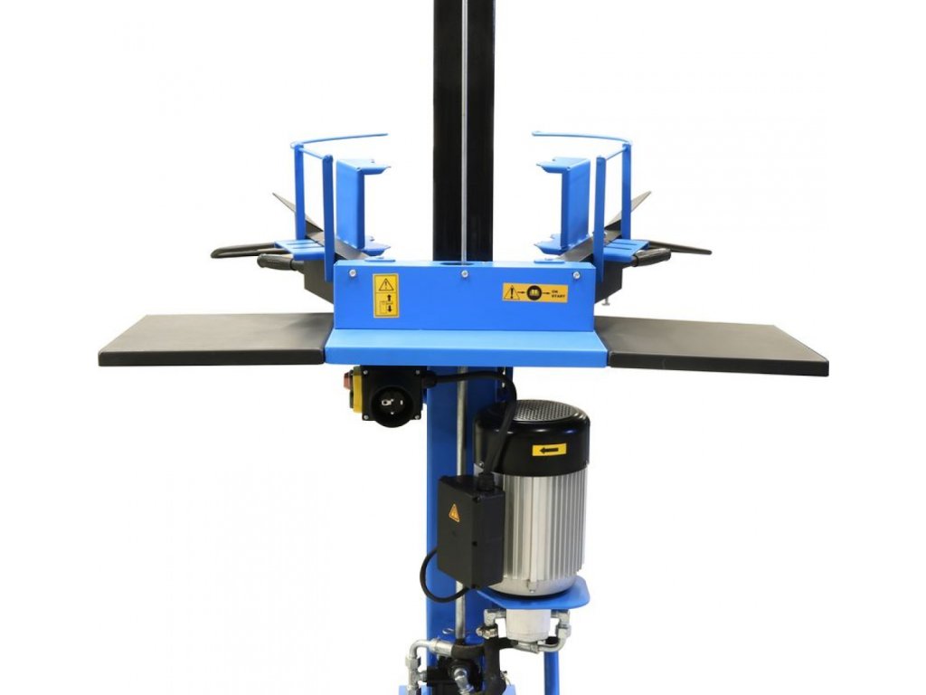 Constructie: cadru din otel robust, pompa hidraulica puternica, coloana de despicare 90 × 90 cm, masa de lucru suspendata (l × w: 310 × 300 mm), suprafete de depozitare (2), maner de tragere, baza inclusiv roti de transport.