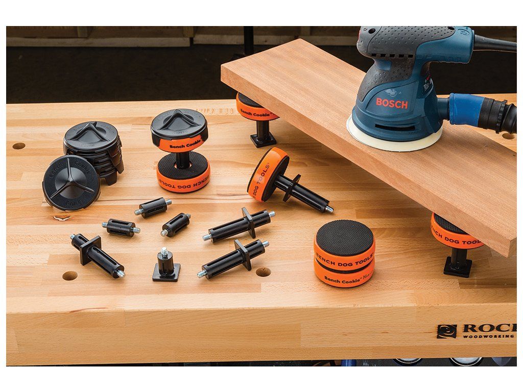 8 suporturi antiderapante cu suprafaţă moale de cauciuc, care fixează piesa de prelucrat ferm în timpul tăierii, şlefuirii, frezării şi a altor operaţii, fără a fi nevoie de cleme.