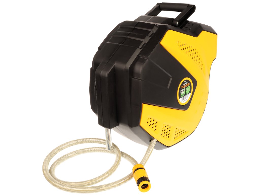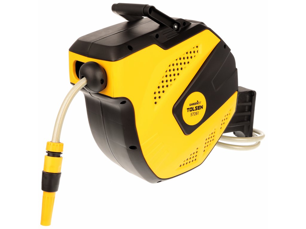 Rularea rapidă, datorită mânerului pliabil, material PP, inclusiv furtunul 1/2" × 15 m, fixare pe perete.