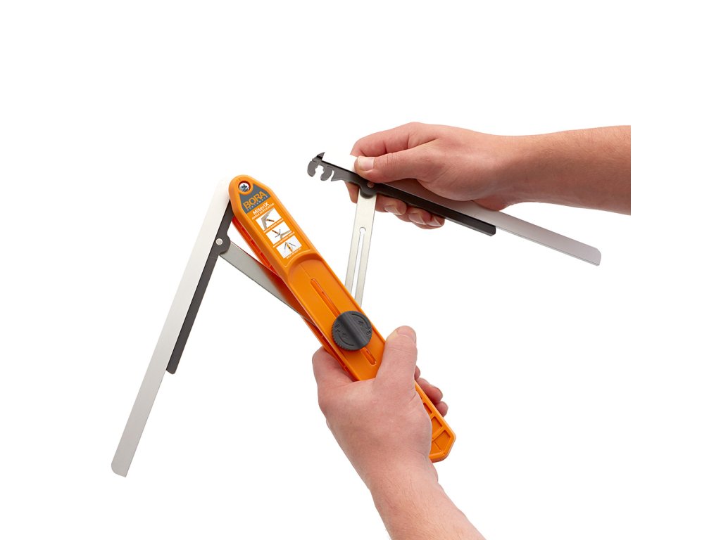Cu transmițătorul de unghi MiteriX de la BORA, măsurarea unghiurilor devine cea mai ușoară sarcină. Raportorul MiteriX este fabricat din plastic ABS durabil și, după măsurare, poate fi blocat în forma exactă a unghiului pe care trebuie să îl întindeți. Designul raportorului permite detașarea unui braț, permițând transferul de jumătate din unghiul măsurătorii. Datorită mecanismului de pliere, unghiul poate fi pliat în dimensiuni minime.