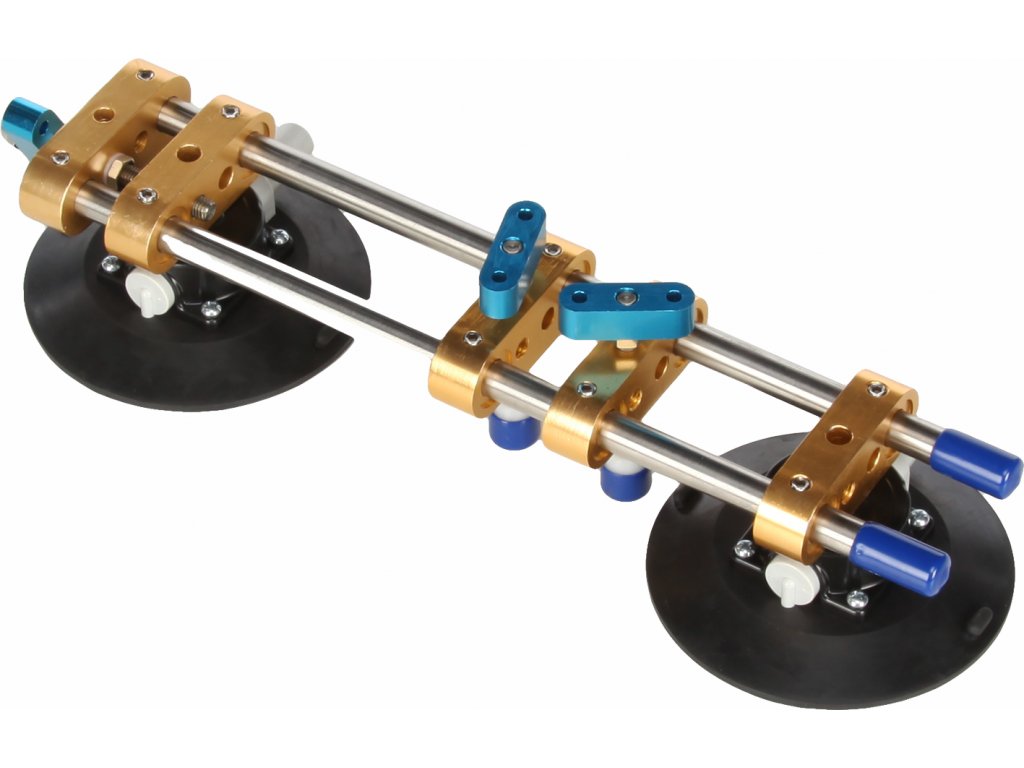 Dispozitiv precis cu ventuză poziționabilă și șuruburi de reglare pentru echilibrarea muchiilor materialului la montare sau lipire. Ventuzele sunt comandate de o pompă de vacuum pentru o apăsare maximă și comandă ușoară. Potrivit pentru lucrări cu marmură, granit, oglinzi, geamuri și alte materiale netede. Diametrul ventuzelor 149 mm. Lungimea totală a dispozitivului 47 cm. Capacitatea maximă 160 kg, capacitatea de siguranță 40 kg.